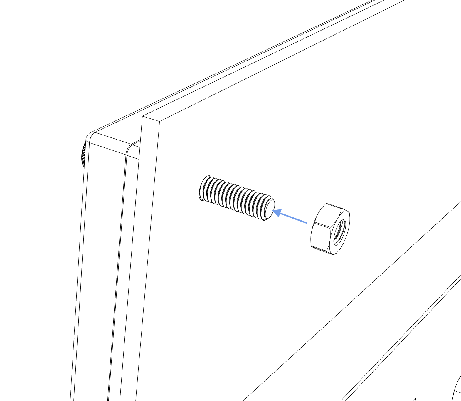 From the back of the G3X stand, install and tighten the four M4 nuts onto the four screws inserted in the previous step. The M4 Screws use a 2.5mm hex key. The M4 nuts require a 7mm socket or pliers to tighten. Do not overtighten the screws.