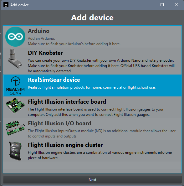 The following setup article will guide you through the process of adding and configuring two RealSimGear G5 devices for use with Air Manager and applies to both Microsoft Flight Simulator 2020 and X-Plane 11/12.